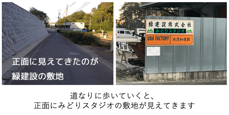 車搭載のナビですと迷われるお客様が多くいらっしゃるため、Googleマップを推奨させていただいております。(「みどりスタジオ」で検索すると出ます)