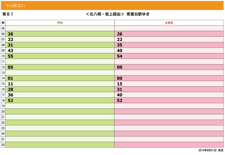 - 1番のりば 【青81 〈坂上・北八朔経由〉中山駅北口行き】 バス停【寒谷戸】下車徒歩3分