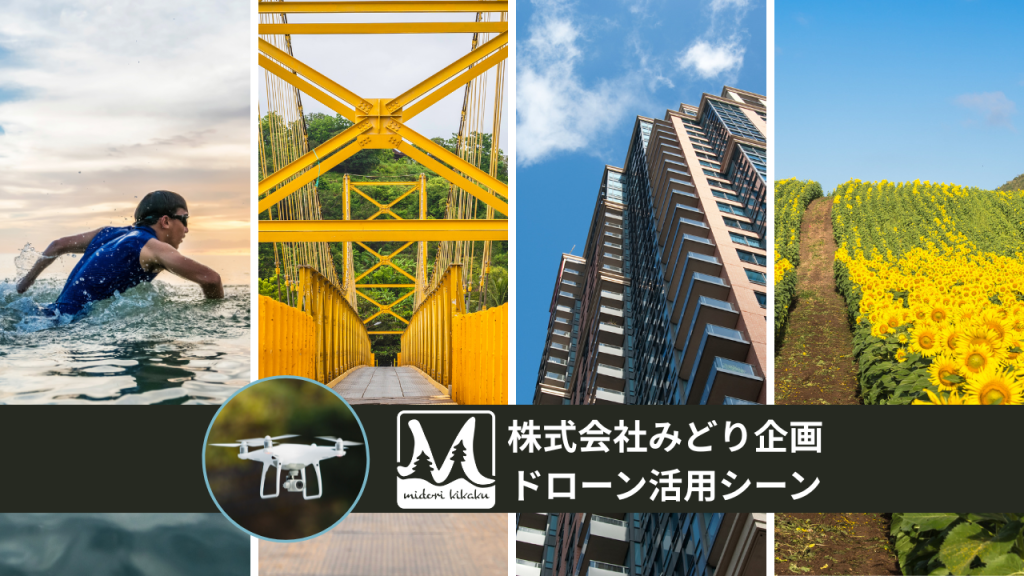 私達、みどり企画は、ドローンに関する国家資格「1等無人航空機操縦士」の有資格者を擁し、次に挙げるようなドローンを活用した事業を展開しております。